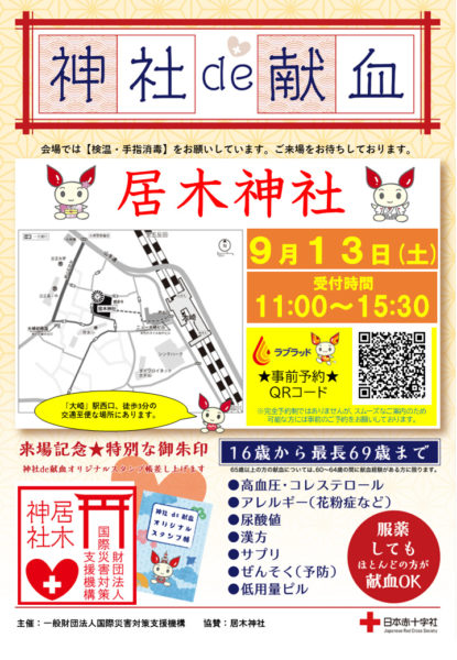 神社 de 献血 9月13日(土) 居木神社献血活動のお知らせ