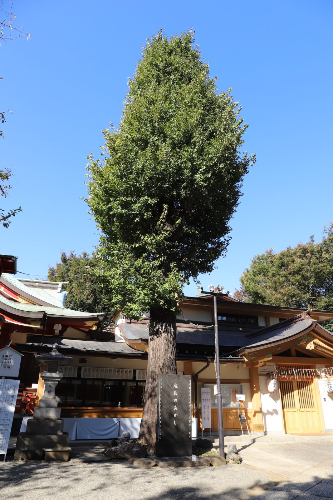 社務所前の銀杏の木を撫でることで子宝・安産の御利益にあずかると云われております。