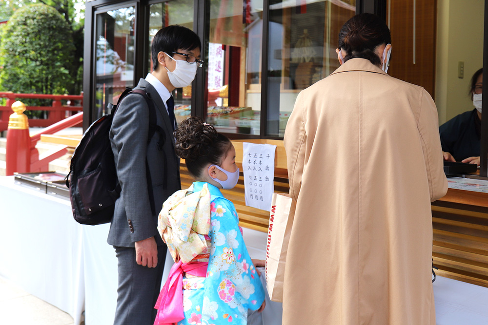 神社に着いたら、社務所受付で七五三詣にきたことを告げ、申込用紙に記載された住所やご両親のお名前と生年月日、お子様の続柄、お名前、生年月日、祝い年を確認します。