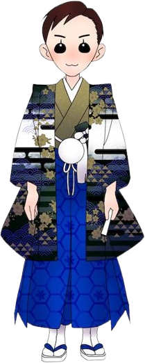 5歳の男の子は、長着・羽織ともに黒の紋付袴が正式な衣装とされています。ただし最近では黒にこだわることなく、自由な色や柄でコーディネートを楽しむのが一般的で、羽織を着用しない場合もあります。正式には家紋を入れますが、これも入れなかったり、家紋がわからなければ通紋を貼り付けてもらったりすることもできます。