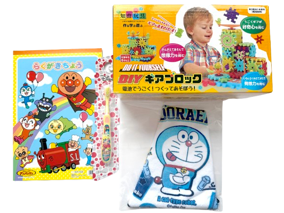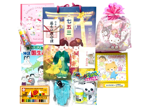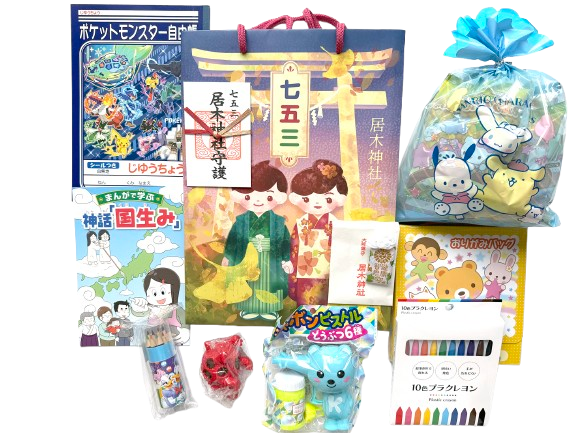 七五三詣授与品(おみやげ)として御神札、御守のほか、お菓子や文具品、おもちゃを授与いたします。